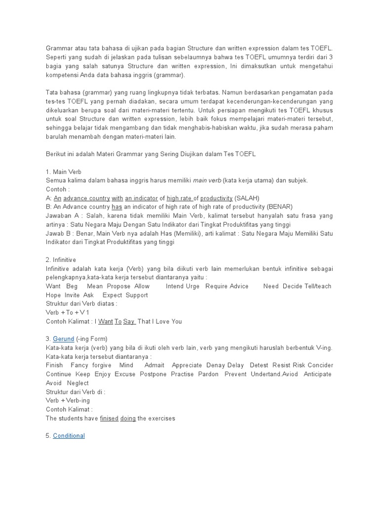 Grammar Atau Tata Bahasa Di Ujikan Pada Bagian Structure Dan Written Expression Dalam Tes TOEFL