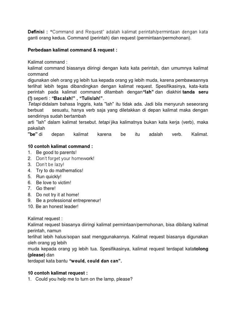 Pengertian, rumus, dan contoh Command and Request ~ Bahasa Inggris Bermanfaat