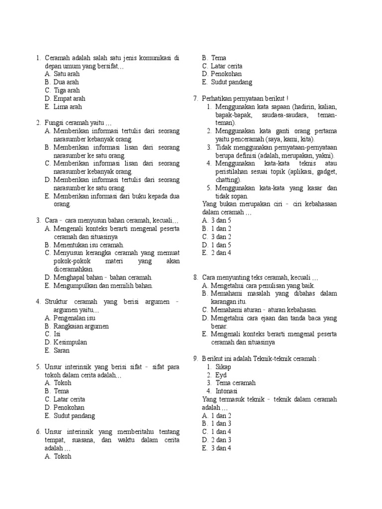 50 Contoh Soal Teks Ceramah Pilihan Ganda beserta Jawabannya