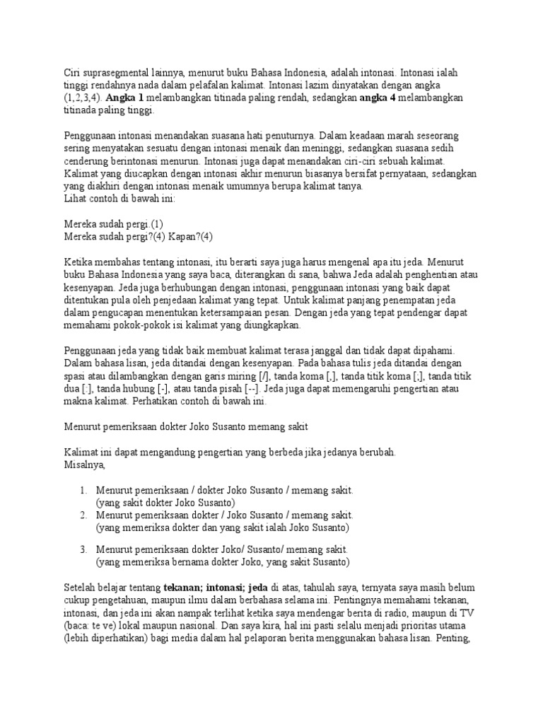 Pengertian Lafal, Intonasi, Tekanan, Jeda dan Contohnya