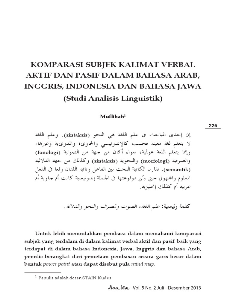 DOC) MORFOLOGI ARAB - Kontrastif Verba Aktif dan Pasif dalam Bahasa Indonesia dengan Bahasa Arab | Miftah Khusnifa - Academia.edu