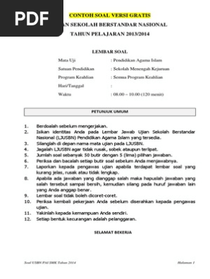Contoh Soal Usbn Pai Smk Tahun 2013_2014 Versi Gratis