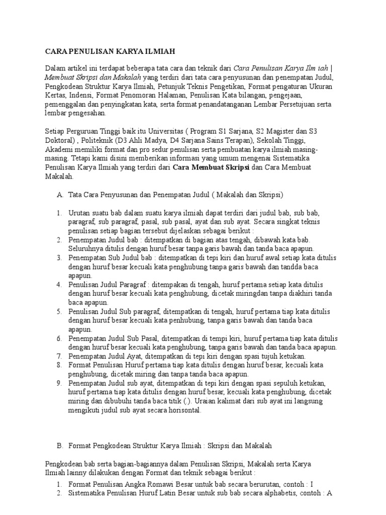 Cara Penulisan Karya Ilmiah