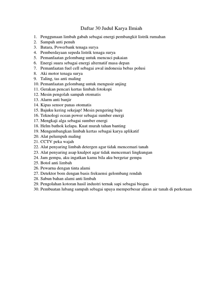 Daftar 30 Judul Karya Ilmiah