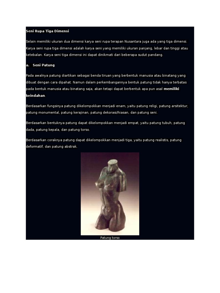 Contoh Karya Seni Rupa 3 Dimensi Dan Fungsinya