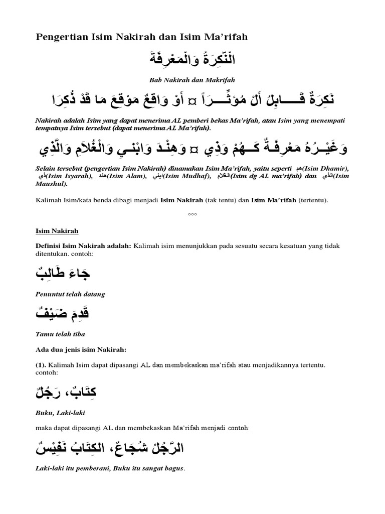 DOC) Bahasa arab - Nakirah dan Ma’rifat | Syahidul Ihya - Academia.edu