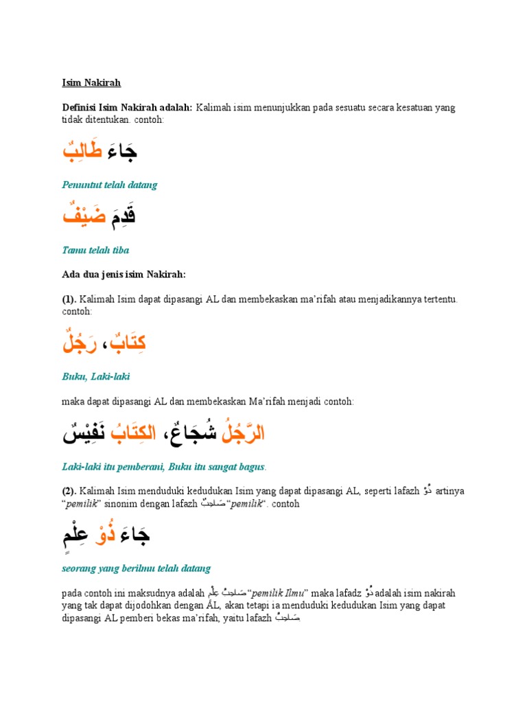 Pengertian Isim Nakirah Dan Contohnya Bahasa Arab
