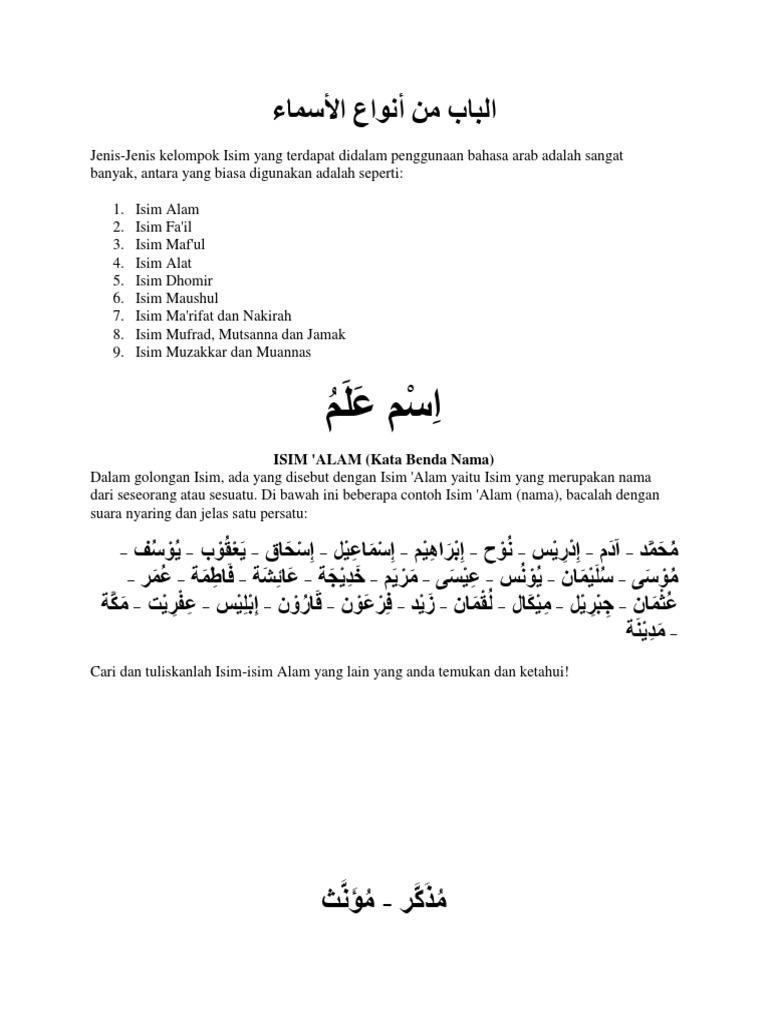 PDF) PEMBAHASAN ISIM NASIRAH DAN ISIM MA’RIFAH DALAM BAHASA ARAB
