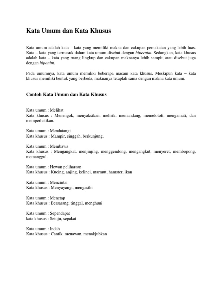 Kata umum dan khusus