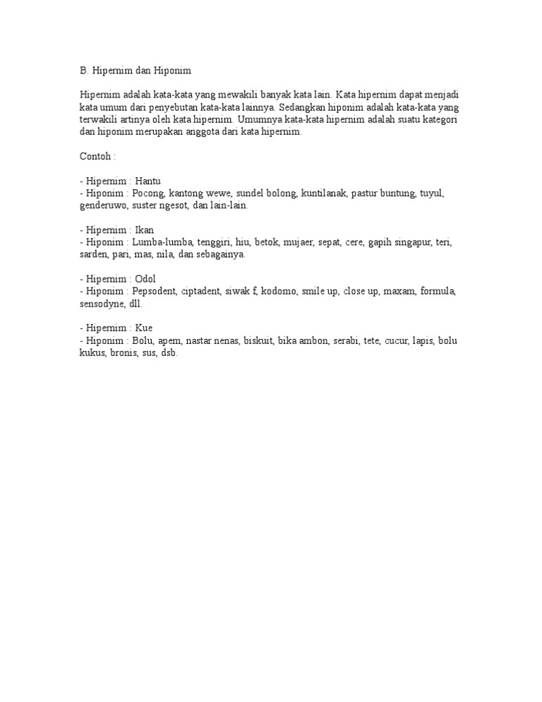 Sebutkan contoh hipernim dan hiponim - Brainly.co.id
