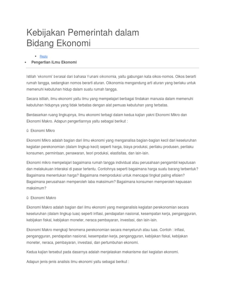 Kebijakan Pemerintah Dalam Bidang Ekonomi