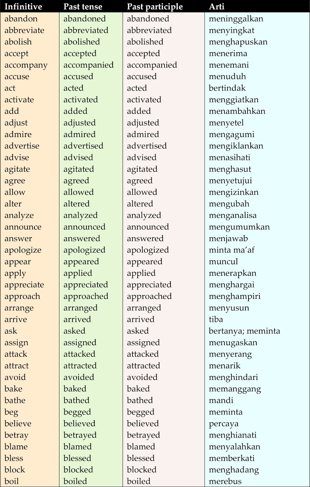 PDF) Daftar kata kerja beraturan (regular verbs) dalam bahasa inggris beserta artinya lengkap | Mmn andi - Academia.edu
