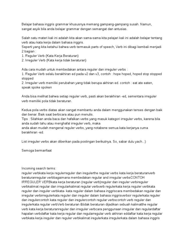 Daftar Kata Kerja Beraturan Dan Tidak Beraturan Lengkap - Kumpulan Kerjaan