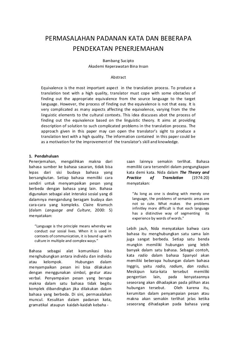PDF) SEBAGAI BAHASA SUMBER KE DALAM BAHASA INDONESIA SEBAGAI BAHASA TARGET (Sebuah Kajian Konseptual-Teroretik)