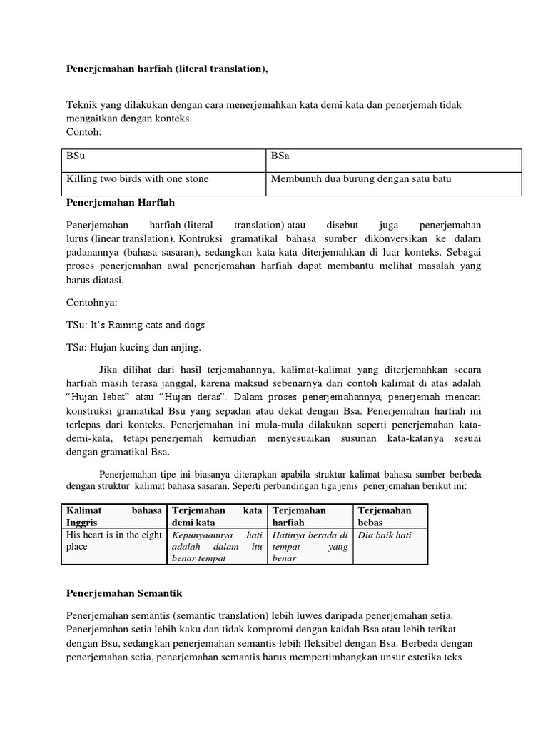Penerjemahan Kata demi Kata, Bebas, dan Harfiah | Galeri Pustaka