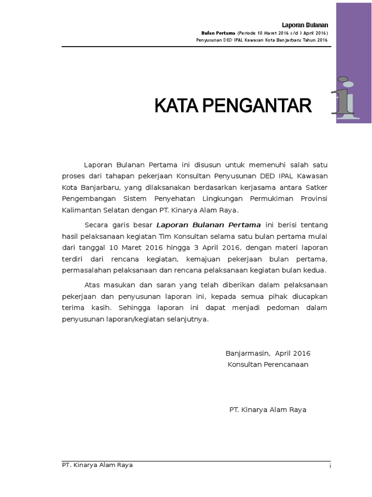 KATA PENGANTAR. pelaporan konsultan sebagaimana disebutkan dalam kontrak No. - PDF Download Gratis