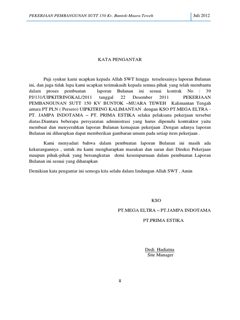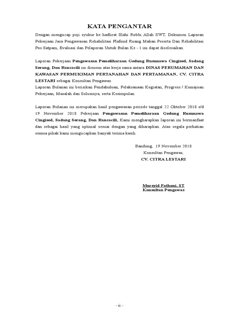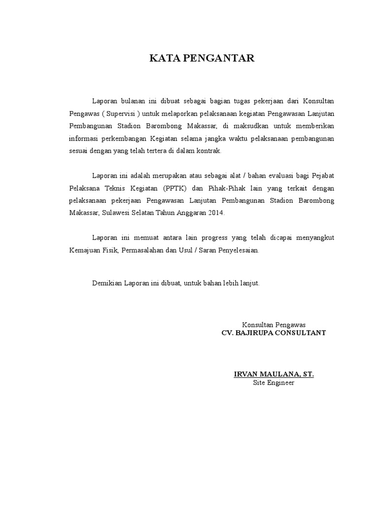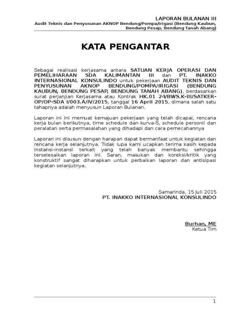 Contoh Kata Pengantar Laporan Bulanan