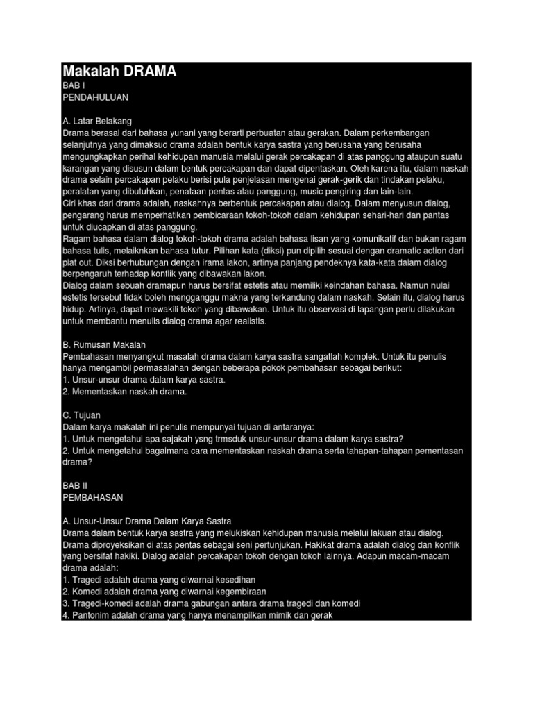 Makalah Drama.docx - BAB I PENDAHULUAN A Latar belakang Sastra pada dasarnya merupakan ciptaan sebuah kreasi bukan semata \u2013 mata sebuah imitasi Karya | Course Hero