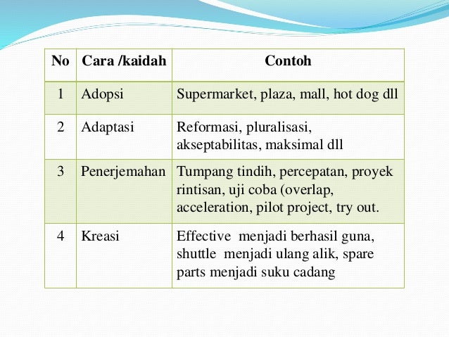 Contoh Kata Serapan Adopsi Adaptasi Terjemahan Kreasi - Barisan Contoh