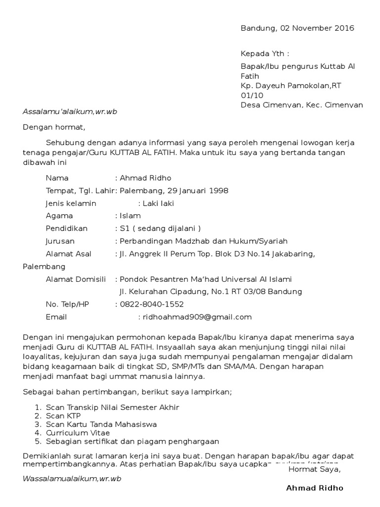 DOC) Contoh Surat Lamaran Kerja 1 | putria ana - Academia.edu