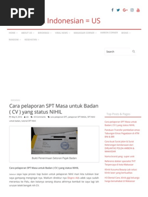 Cara pelaporan SPT Masa untuk Badan ( CV ) yang status NIHIL _ American & Indonesian = US