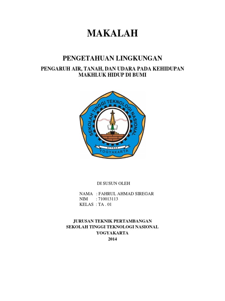 Makalah Pengetahuan Lingkungan PENGARUH AIR, TANAH, DAN UDARA PADA KEHIDUPAN MAKHLUK HIDUP DI BUMI