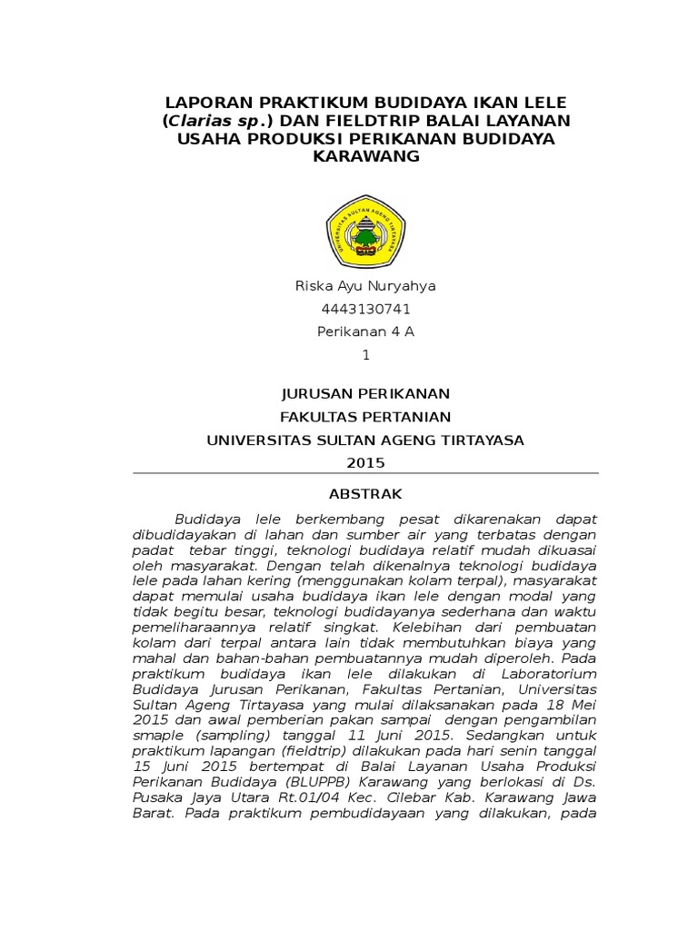 DOC) penanganan kolam budidaya ikan lele-laporan pkl | Syafrudin Sinala - Academia.edu