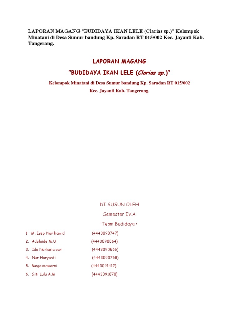 DOC) Makalah Budidaya Lele Dumbo di Kelurahan Bambu Apus, Kec. Cipayung, Jakarta Timur | Satrio Sukma Wicaksana - Academia.edu