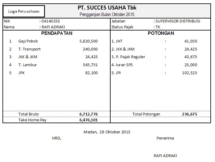 Kumpulan Sumber Makalah Jurnal: Contoh Slip Gaji Karyawan Perusahaan