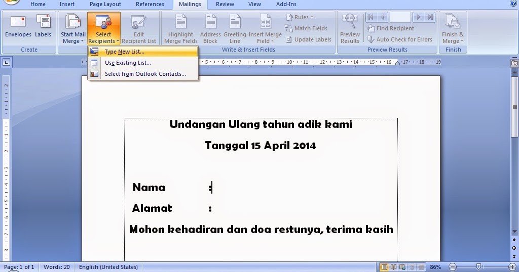 Cara Membuat Mail Merge di Ms. Office Word 2007, 2010, 2013 - Pintar Komputer
