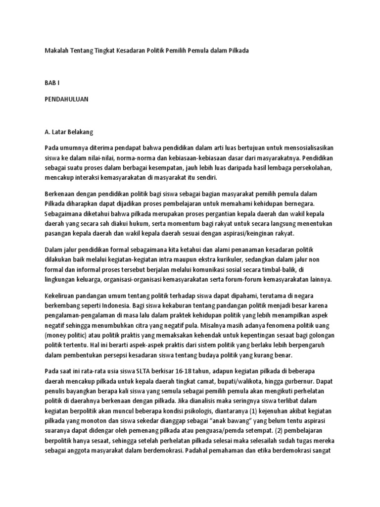 Makalah Tentang Tingkat Kesadaran Politik Pemilih Pemula dalam Pilkada.docx