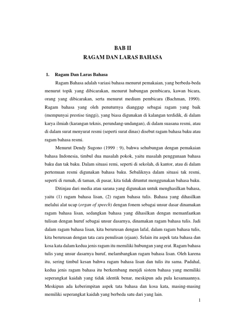 DOC) Ragam, Laras, dan Variasi Bahasa | Lela Fadilah - Academia.edu