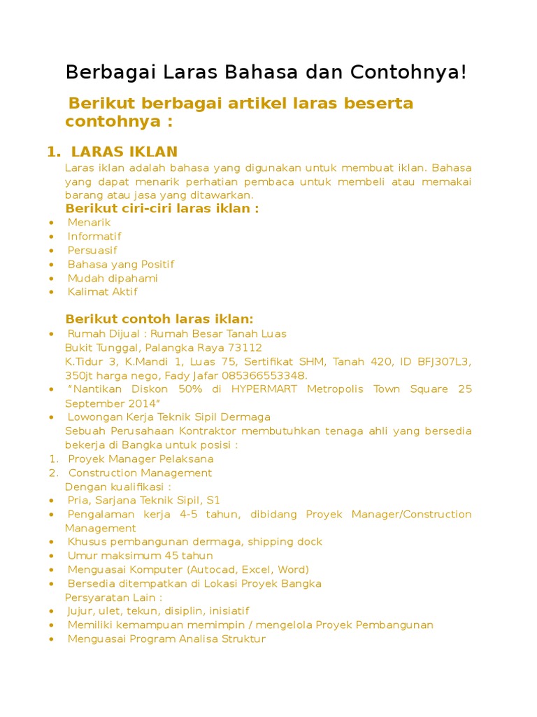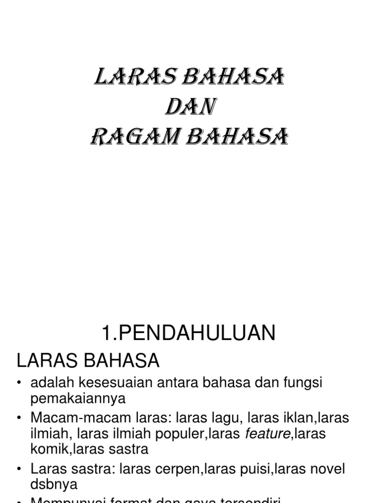 Berbagai Laras Bahasa Dan Contohnya