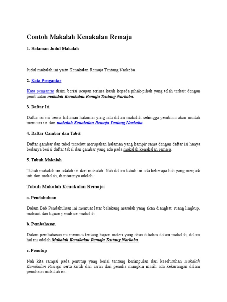 Contoh Makalah Tentang Kenakalan Remaja - Kumpulan Contoh Makalah Doc Lengkap