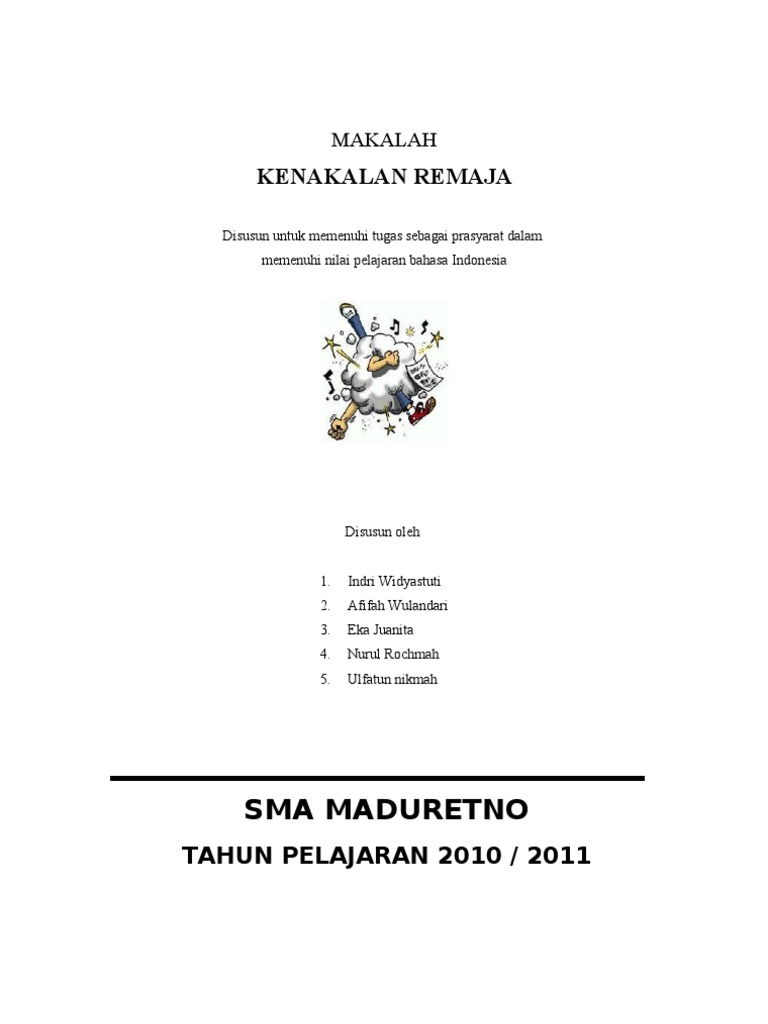 Contoh Cover Makalah Kenakalan Remaja - Kumpulan Contoh Makalah Doc Lengkap