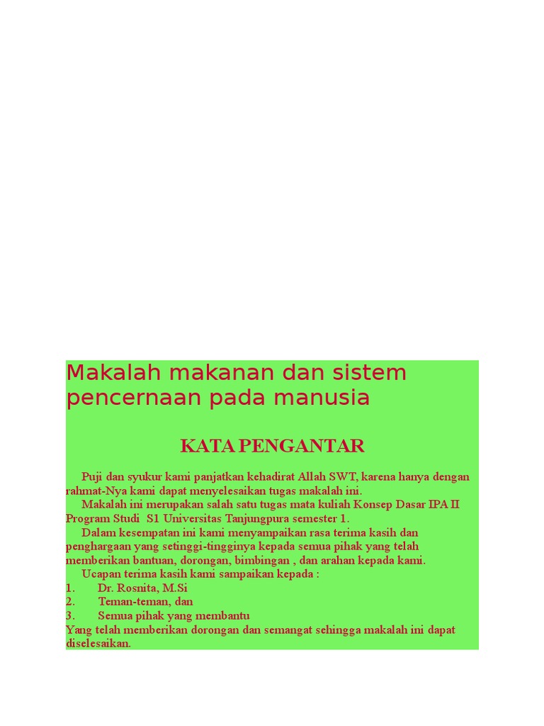 MAKALAH KELOMPOK SISTEM PENCERNAAN MANUSIA. Makalah ini ditulis untuk memenuhi tugas mata kuliah Ilmu Pengetahuan Alam 1 - PDF Download Gratis
