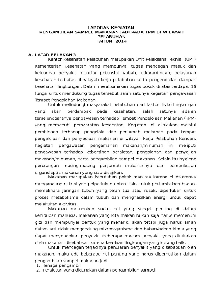 Laporan Pengambilan Sampel Makanan 2014