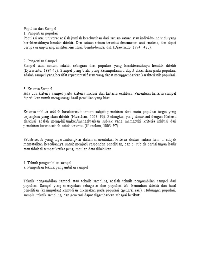 DOC) Populasi, Sampel & Teknik Sampling | gita indriani - Academia.edu