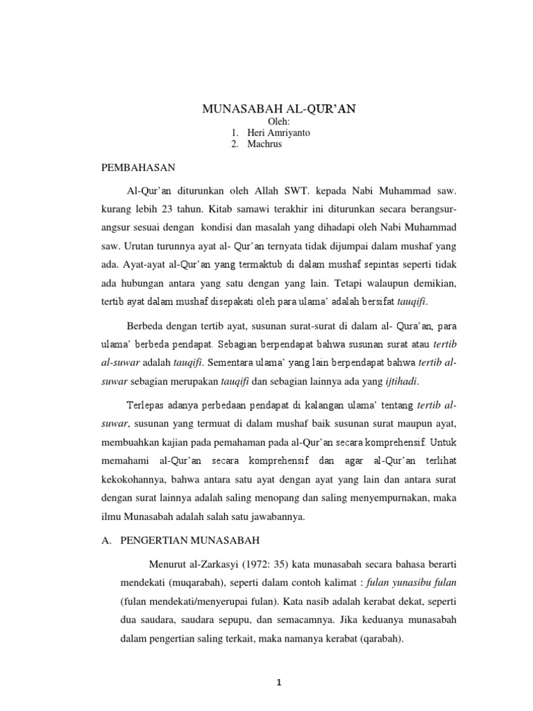 Makalah Munasabah Al-qur’An
