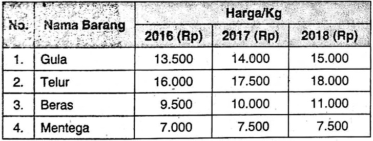 Dengan indeks harga agregatif tertimbang tahun dasar 2016, berikan kesimpulan tingkat inflasi tahun 2018 - Mas Dayat