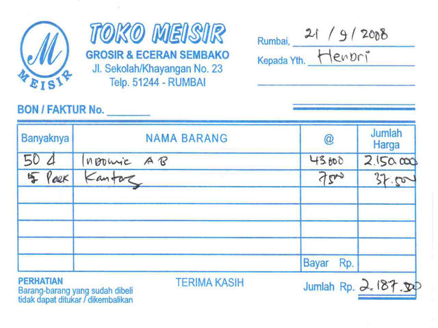 HILMI PUTRA - Contoh nota menggunakan kertas jenis NCR… | Facebook