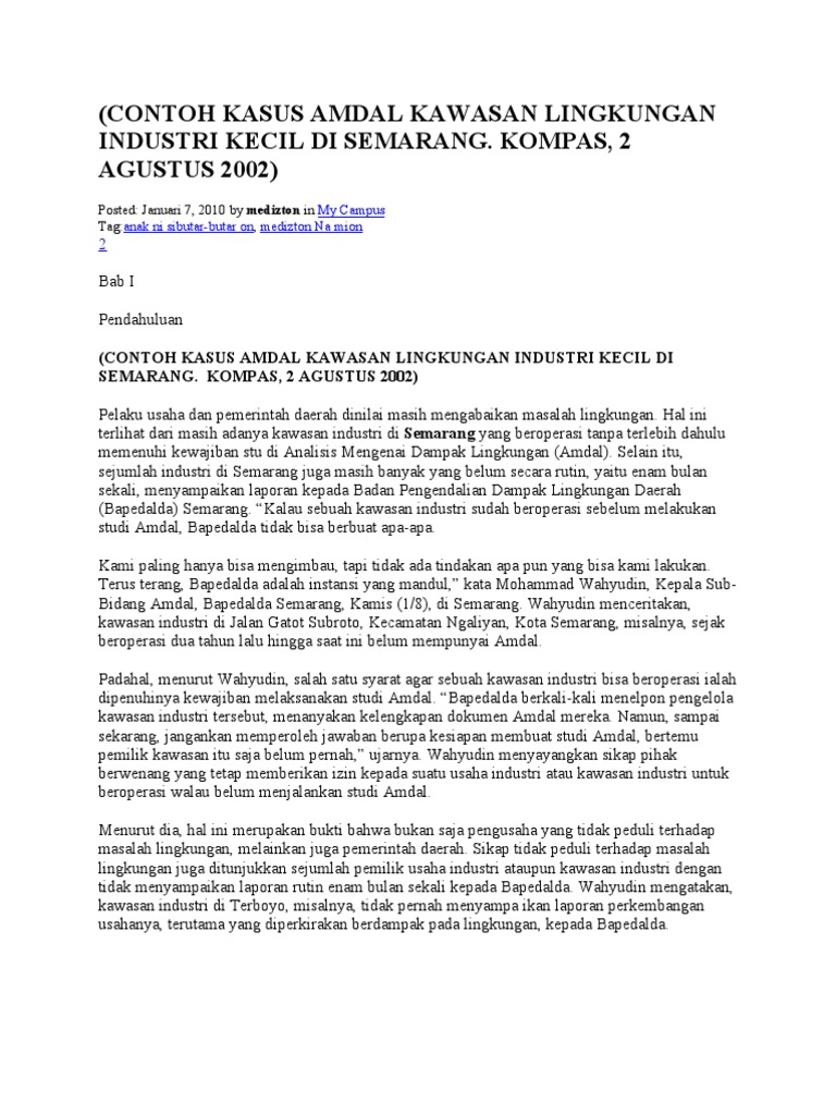 Contoh Kasus Amdal Kawasan Lingkungan Industri Kecil Di Semarang