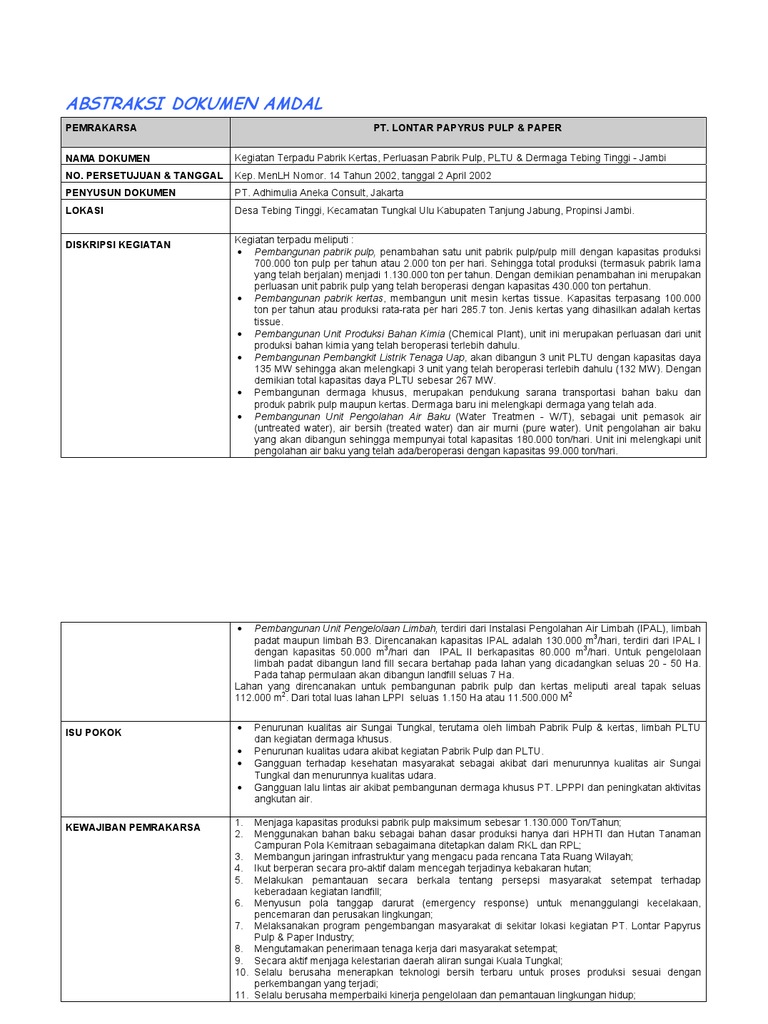 Contoh Dokumen Amdal Perusahaan Pdf - safarilasopa