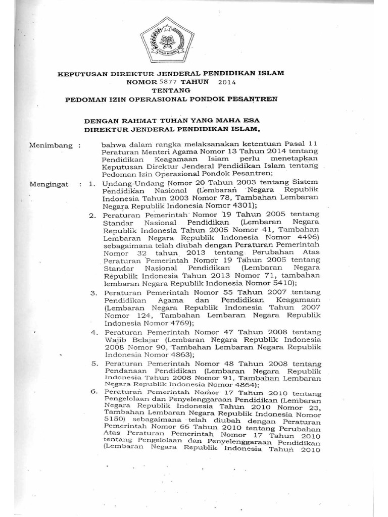 Contoh Sk Izin Operasional Pondok Pesantren - Guru Ilmu Sosial