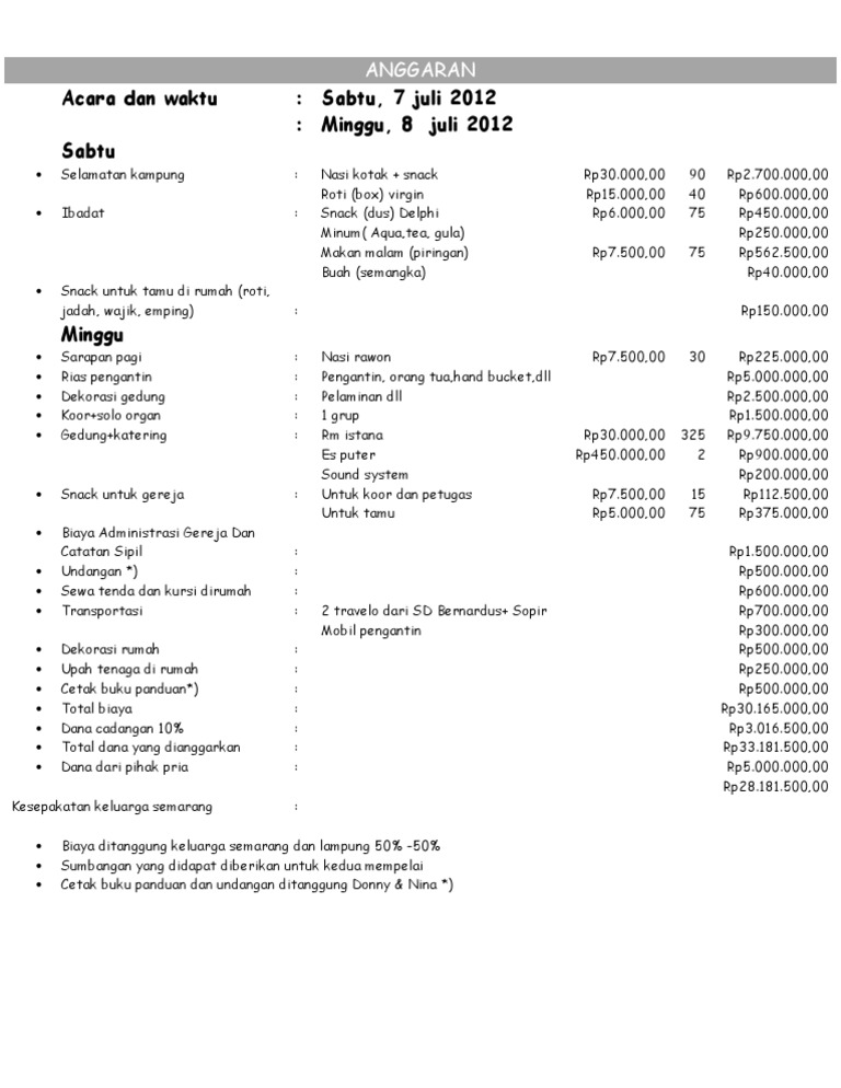 Contoh Rincian Anggaran Biaya Pernikahan Sederhana - Bagikan Contoh