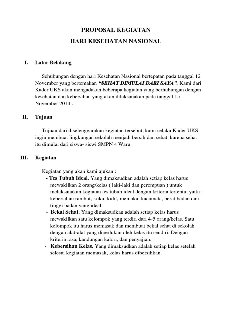 Contoh Proposal Hari Kesehatan Nasional