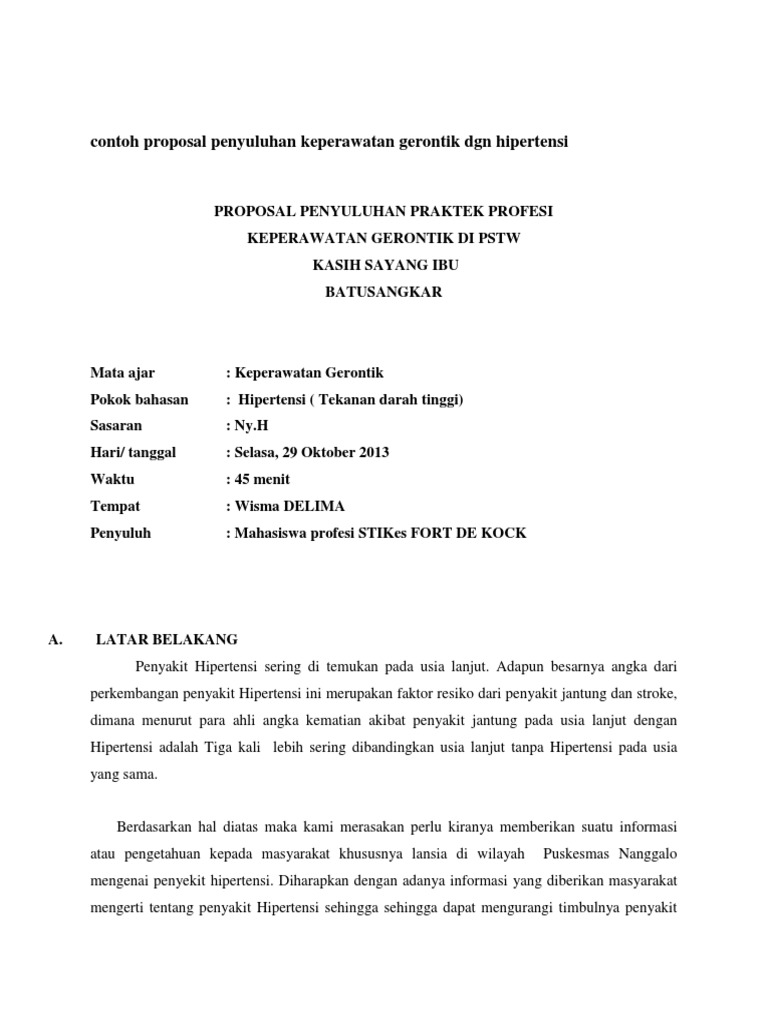 Contoh Proposal Penyuluhan Keperawatan Gerontik Dgn Hipertensi