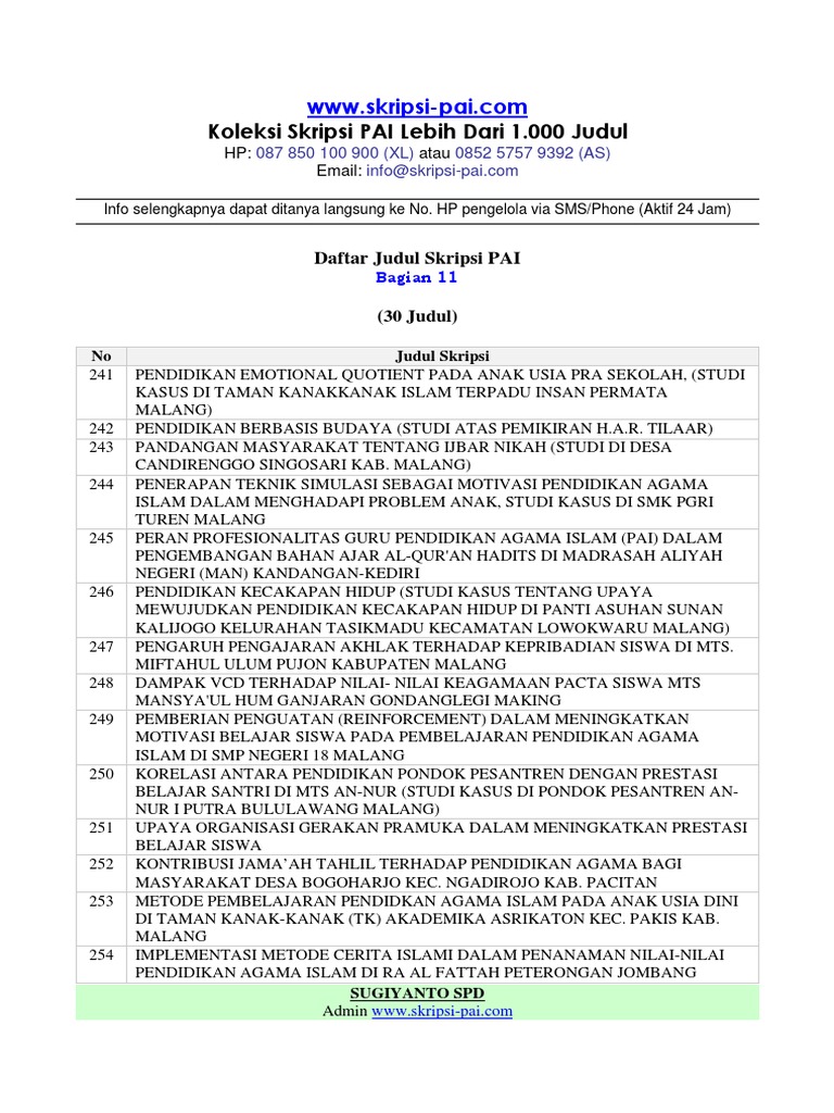 Kumpulan judul skripsi jurusan pai