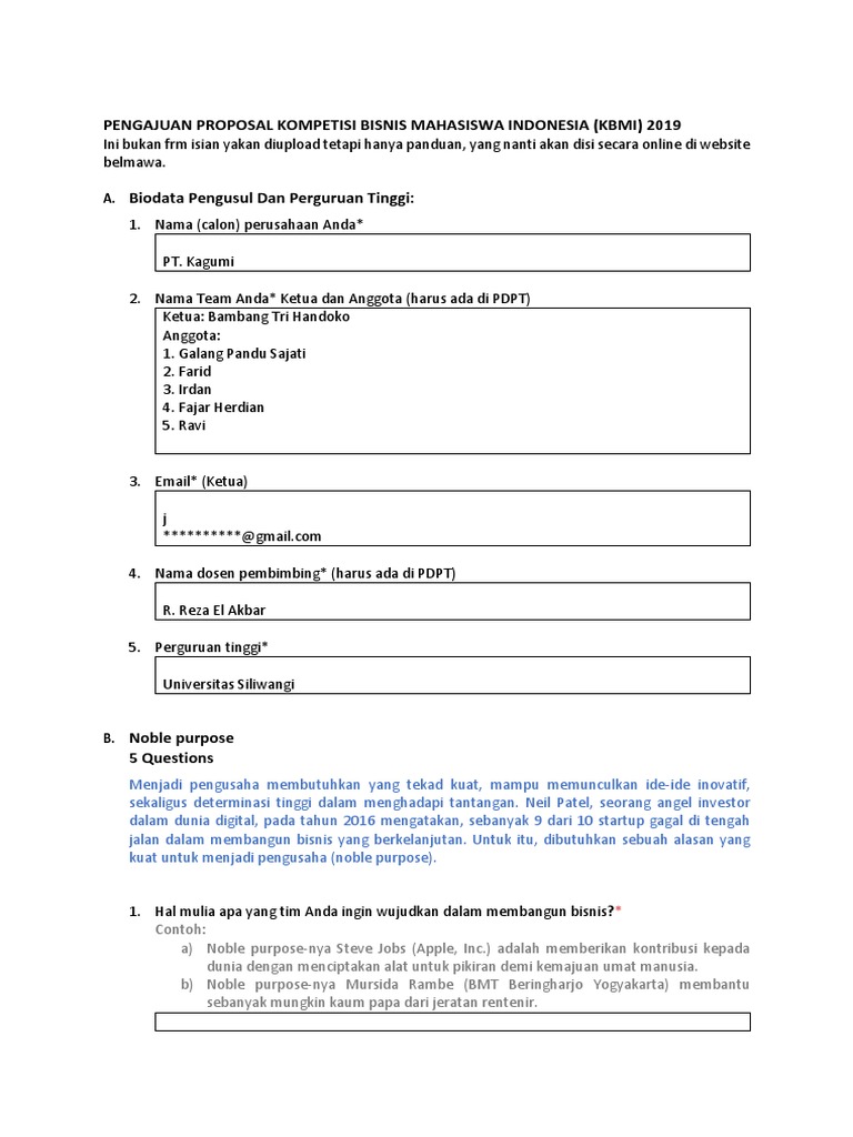 DOC) Kategori : KBMI PROPOSAL PROGRAM KOMPETISI BISNIS MAHASISWA INDONESIA | Fikri Muthohari - Academia.edu