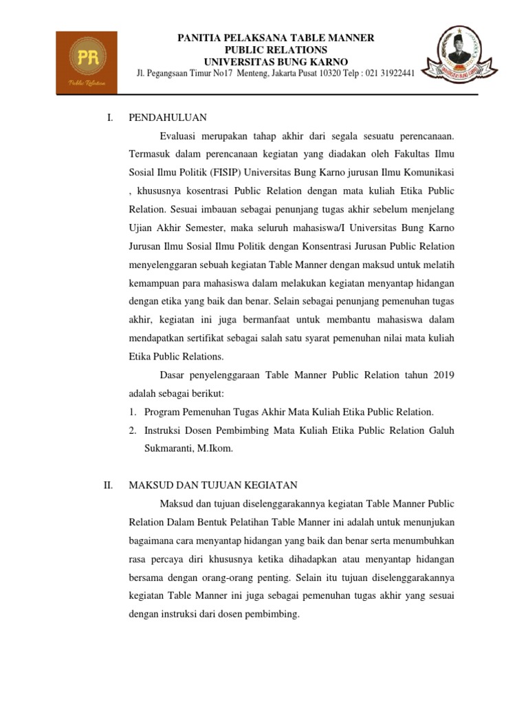 Contoh Proposal Kegiatan Table Manner